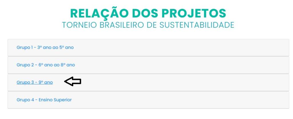 Na relação dos projetos, escolha o Grupo 3 e depois vote nos projetos de nossos alunos: “Sustenta Green” e “Por um mundo mais verde”.
