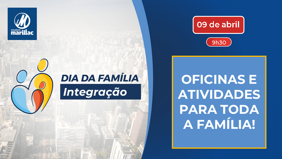 No próximo dia 09 de abril, sábado, a partir das 9h30, realizaremos o “Dia da Família – Integração”.