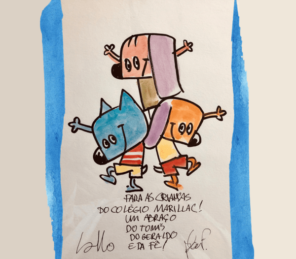 Olha só o presente que os alunos do Marillac ganharam! Uma ilustração com o Tomás, o Geraldo e a Fernanda, personagens dos livros que dão apoio ao Programa Socioemocional LIV nos primeiros anos do ensino fundamental, com dedicatória dos autores, Blandina Franco e José Carlos Lollo. Blandina, é paulista, filha do dramaturgo Jorge Andrade e... Continuar Lendo →